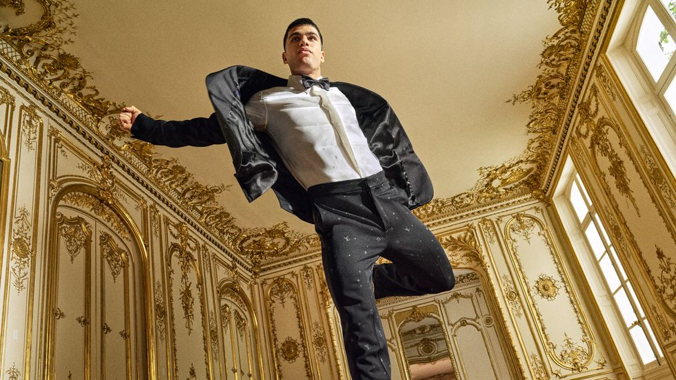 A sessão de fotos abrangente realizada por Jorge Ortiz Perez mostra o espanhol a vestir várias peças da coleção, incluindo uma camisa de pijama de seda de manga comprida e calças, uma camisa de algodão e um casaco em mistura de seda e lã da linha Damier, além de uma casaco de couro varsity vermelha.